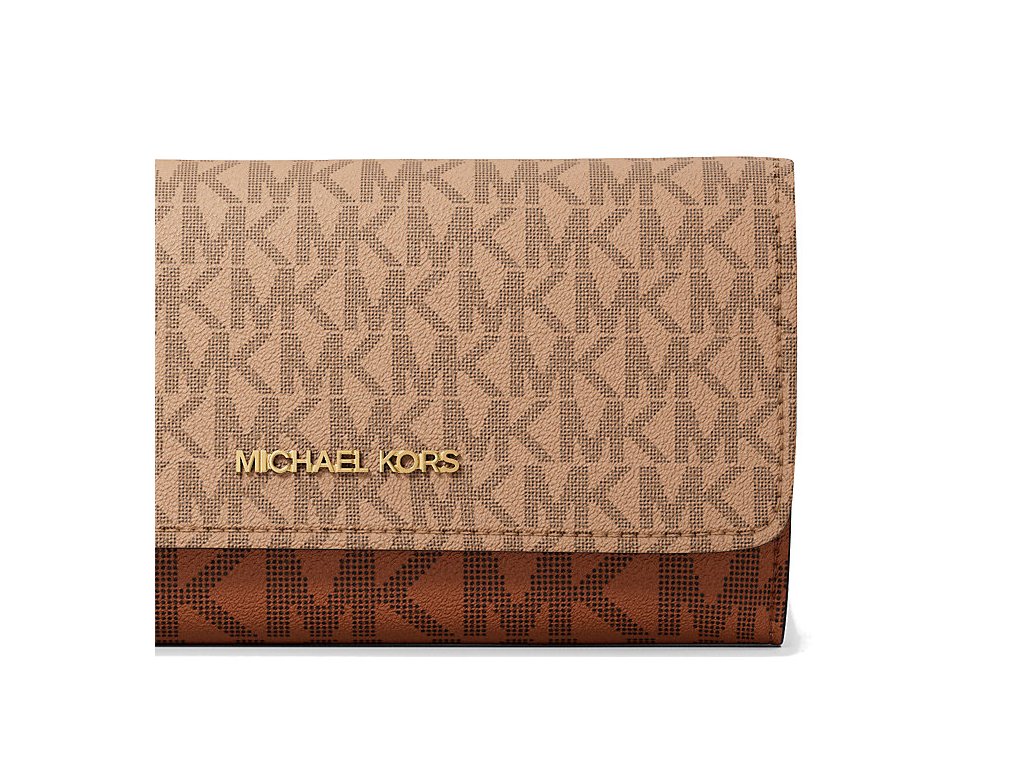 Michael Kors Jet Set Large Signature Logo Tri-Fold Wallet Camel Multi