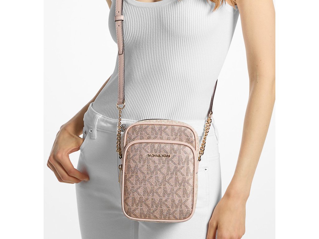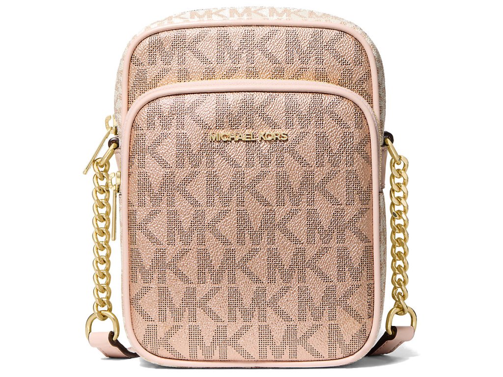 Michael Kors Kabelka Jet Set Medium Metallic Signature Logo Crossbody Bag Rose Gold Multi