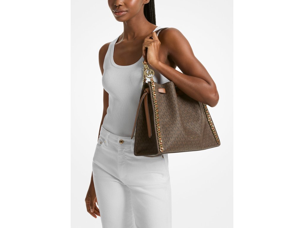 Michael Kors Mina Large Signature Logo Chain Shoulder Bag Brown