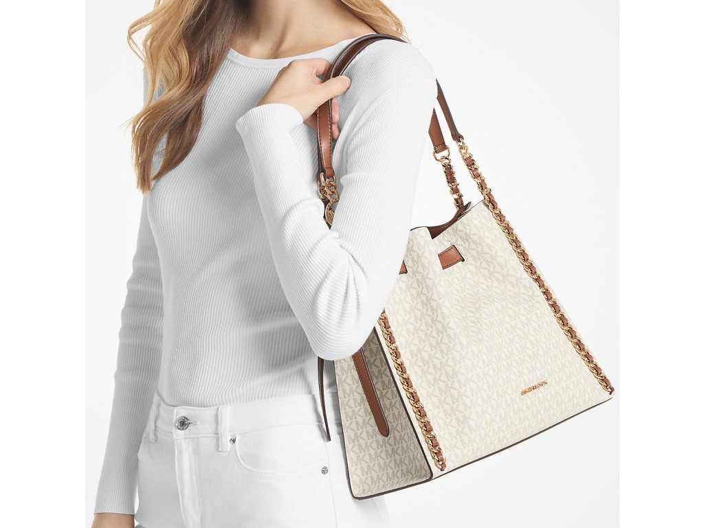 Michael Kors Mina Large Signature Logo Chain Shoulder Bag Vanilla