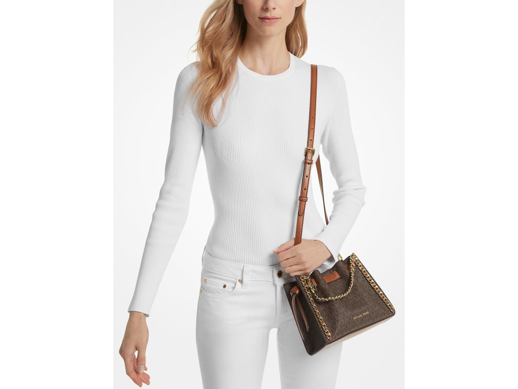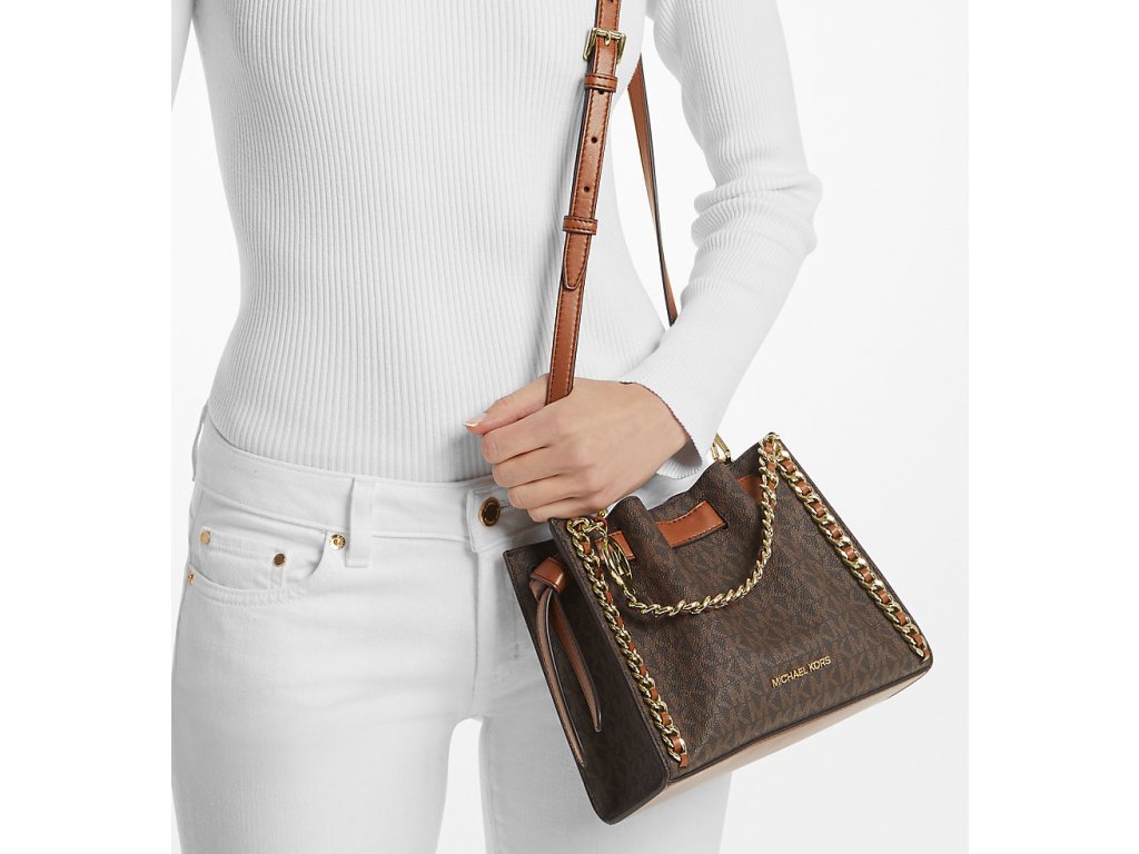 Michael Kors Mina Small Signature Logo Chain Crossbody Bag Brown